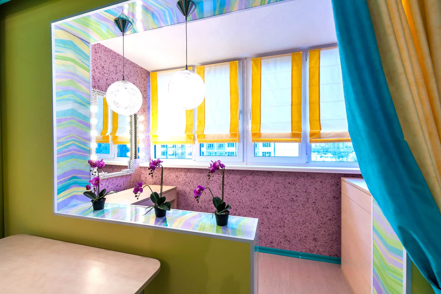Часто разные цвета и фактуры жидких обоев используют для зонирования пространства в квартирах студиях и на просторных кухнях. Постарайтесь подбирать сочетающиеся между собой оттенки хорошо для этого подходит цветовой круг. Учитывайте общие правила цветоподбора и не забывайте о том, что все должно выглядеть гармонично.