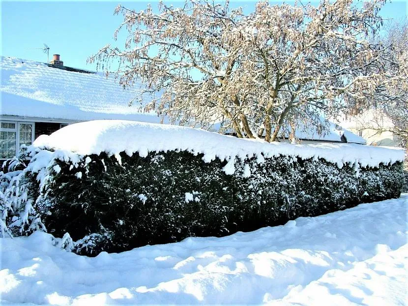 И зимой садоводу надлежит не забывать о живой изгороди из туи. Она не должна быть завалена снегом, иначе начнет преть хвоя.