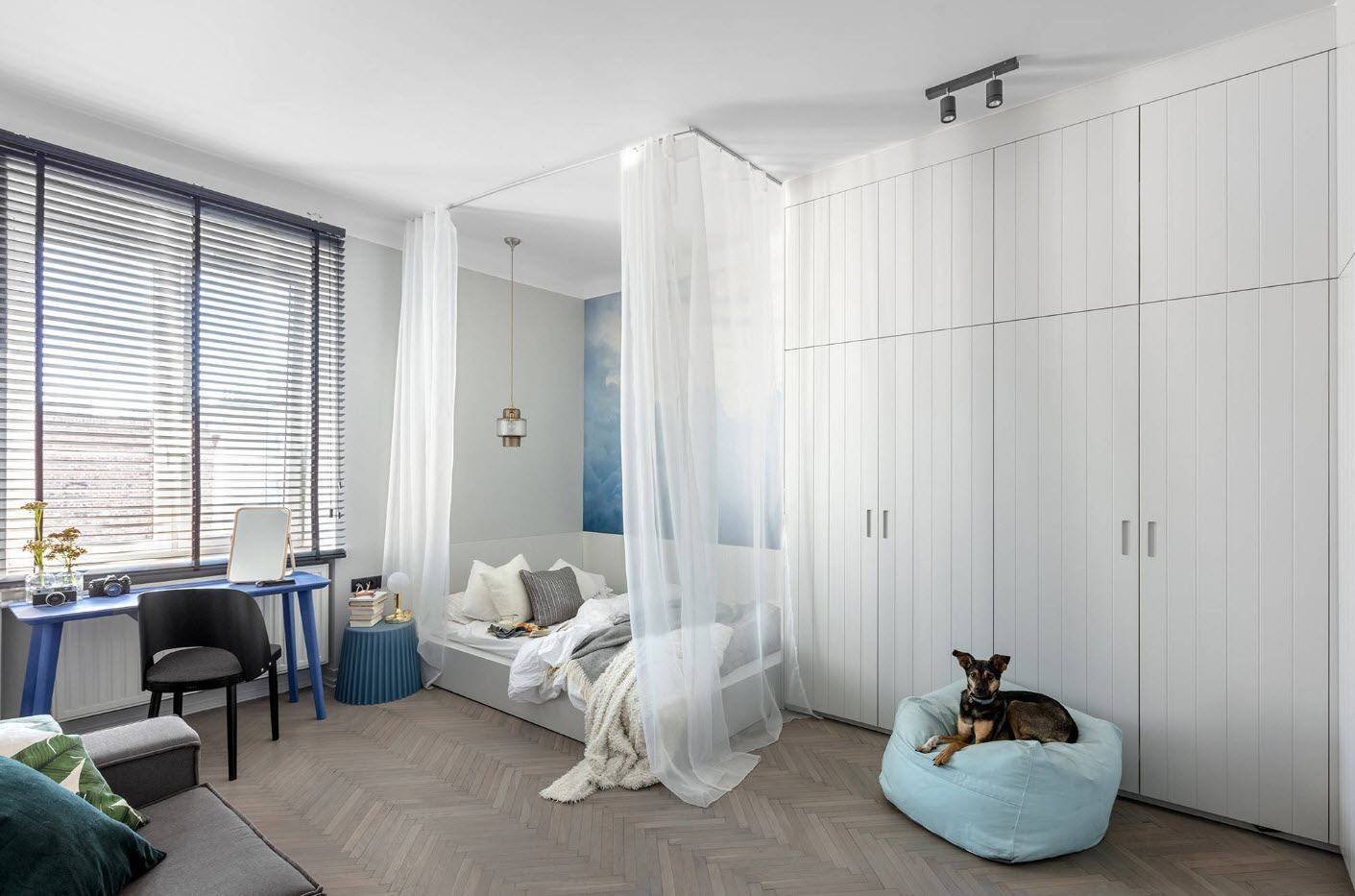 Спальня, совмещенная с гостиной: разделение стационарными и мобильными перегородками