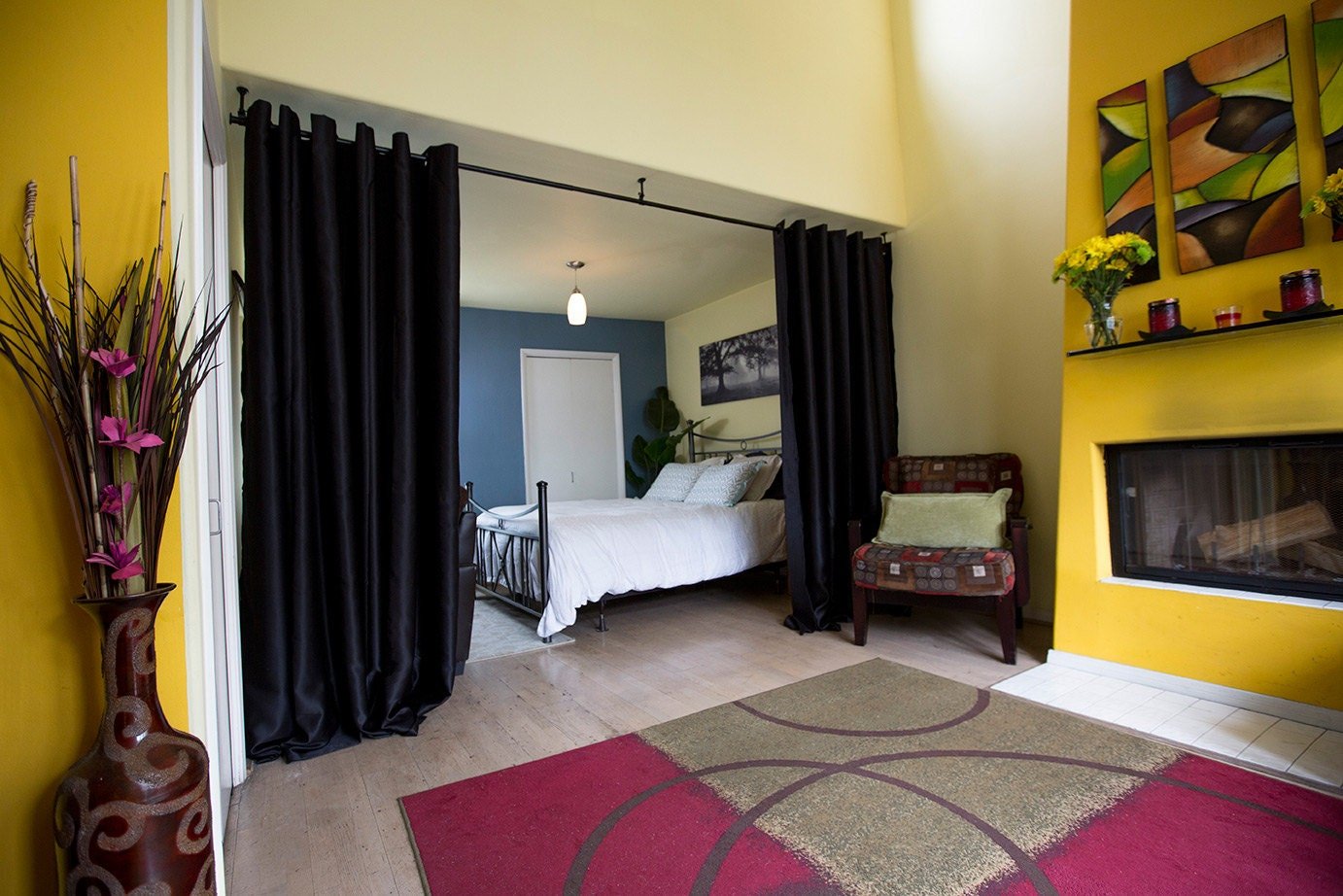 Условная граница. Ещё одно достоинство шторы — это то, что она легко раздвигается или убирается, если Вам это необходимо. Вы будете наслаждаться своим пространством в полной мере. Если возникла необходимость уединиться, то с помощью одного движения Вы легко сможете разделить комнату и снова заниматься своими делами.