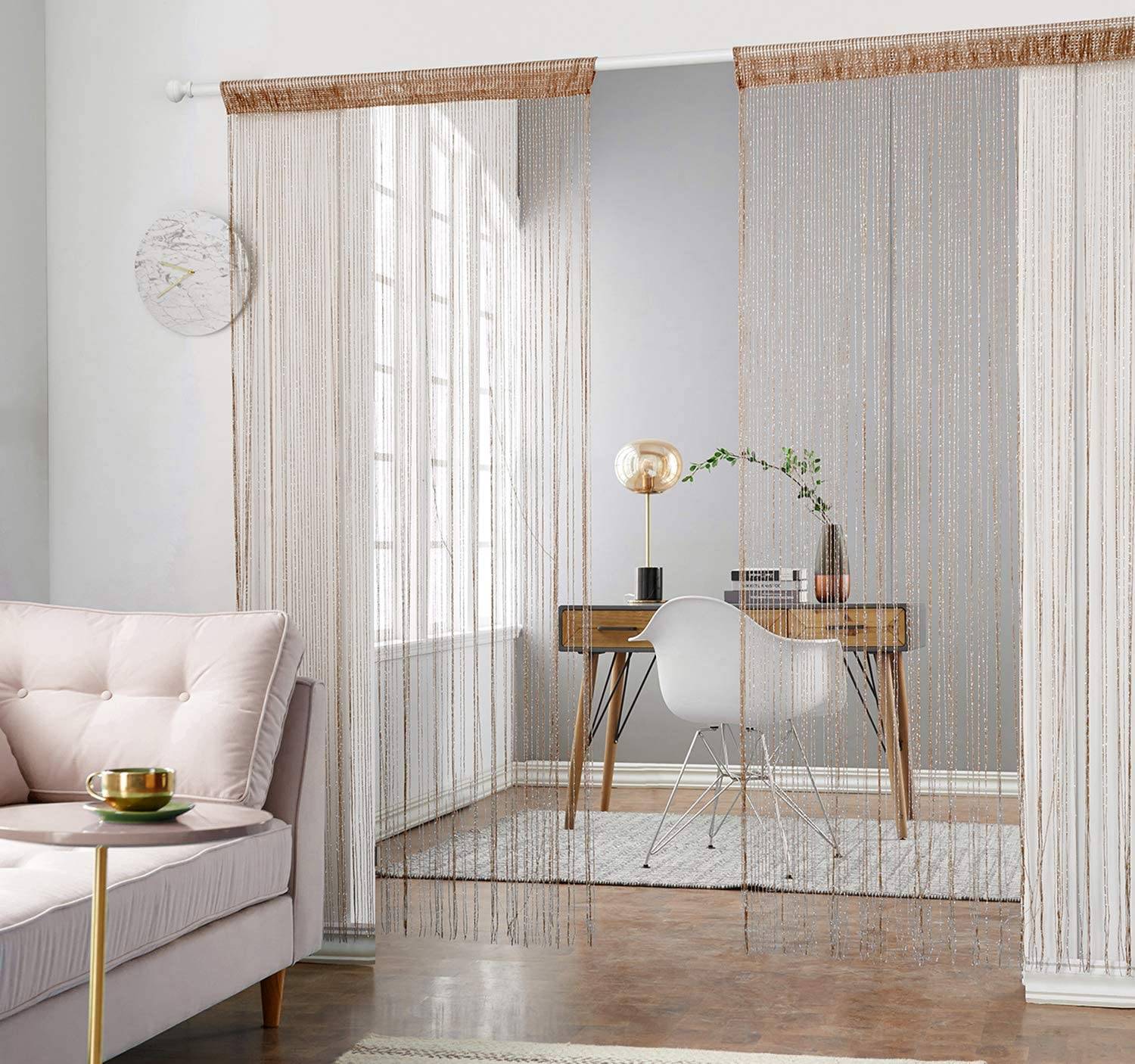 Нитяные шторы похожи на струи воды, стекающие прямо с потолка комнаты. Станут отличным вариантом для оформления современных помещений.