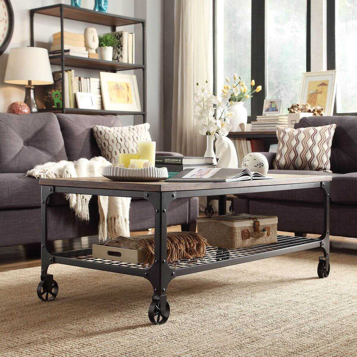 - элементом индустриального стиля в оформлении гостиной станет стол-трансформер с элементами из стали или другого белого блестящего или матового металла.